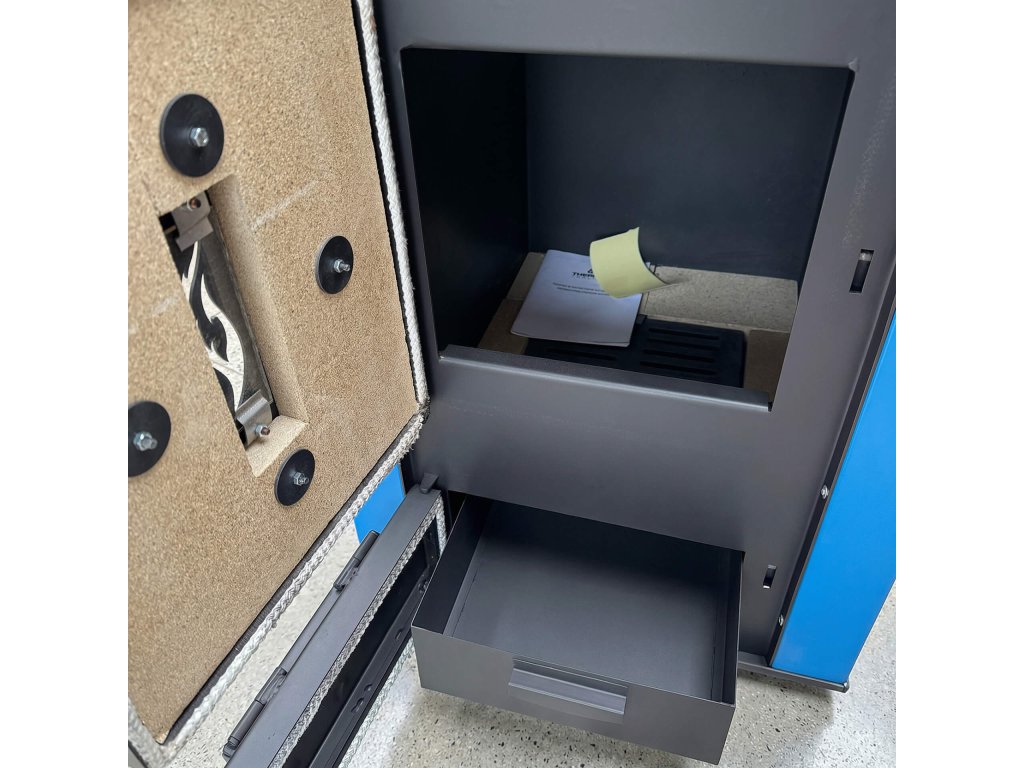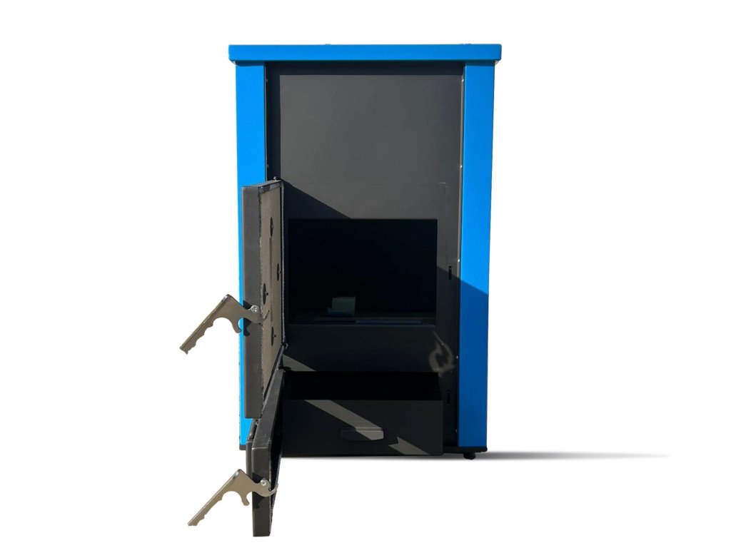 kotle na dřevo, které dokážou vytopit náš prostor prostřednictvím radiátorového okruhu. 25mm izolace z kamenné vlny po celém obvodu a 25mm. Ve spodní části mají nádobu (zásuvku), kde se shromažďuje popel, a tím usnadňuje jeho vynášení.